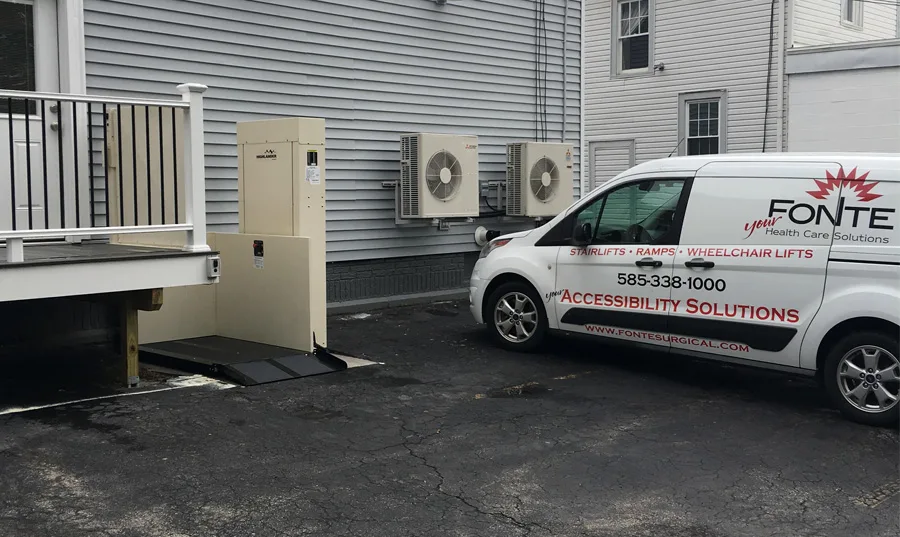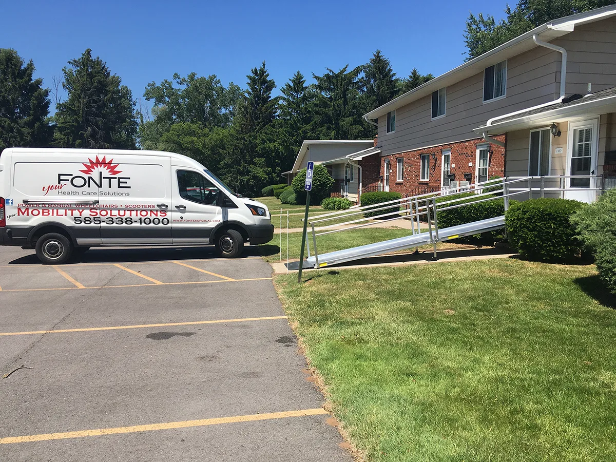 Gallery Project Gallery Fonte Surgical Supply Fonte Surgical Supply has over 20 years of expertise installing accessibility ramps and lifts. Below are a few of our latest projects that we have installed throughout Rochester, NY and the surrounding area. All Images Ramps Lifts Stairlifts Bathroom Safety Fonte’s Helping You Get The Most Out Of Life Contact Us Today